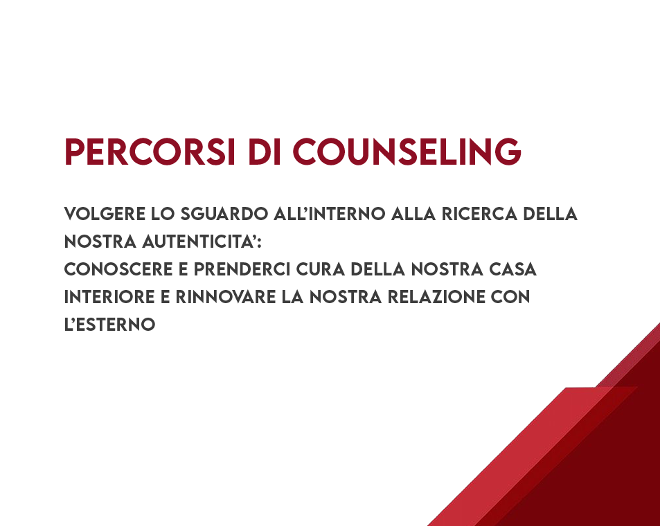 Nell’incontro il cliente fa l’esperienza di sentirsi ascoltato, riconosciuto e sostenuto, esperienza che facilita il contatto con la propria dimensione interiore. Il cliente può così, se lo desidera, intraprendere un percorso dove lo sguardo si volge all’interno, per chiarire, vedere con lenti più “pulite” la propria personale situazione e scoprire percorsi possibili e facilitanti per il raggiungimento di un maggior benessere ed integrazione.