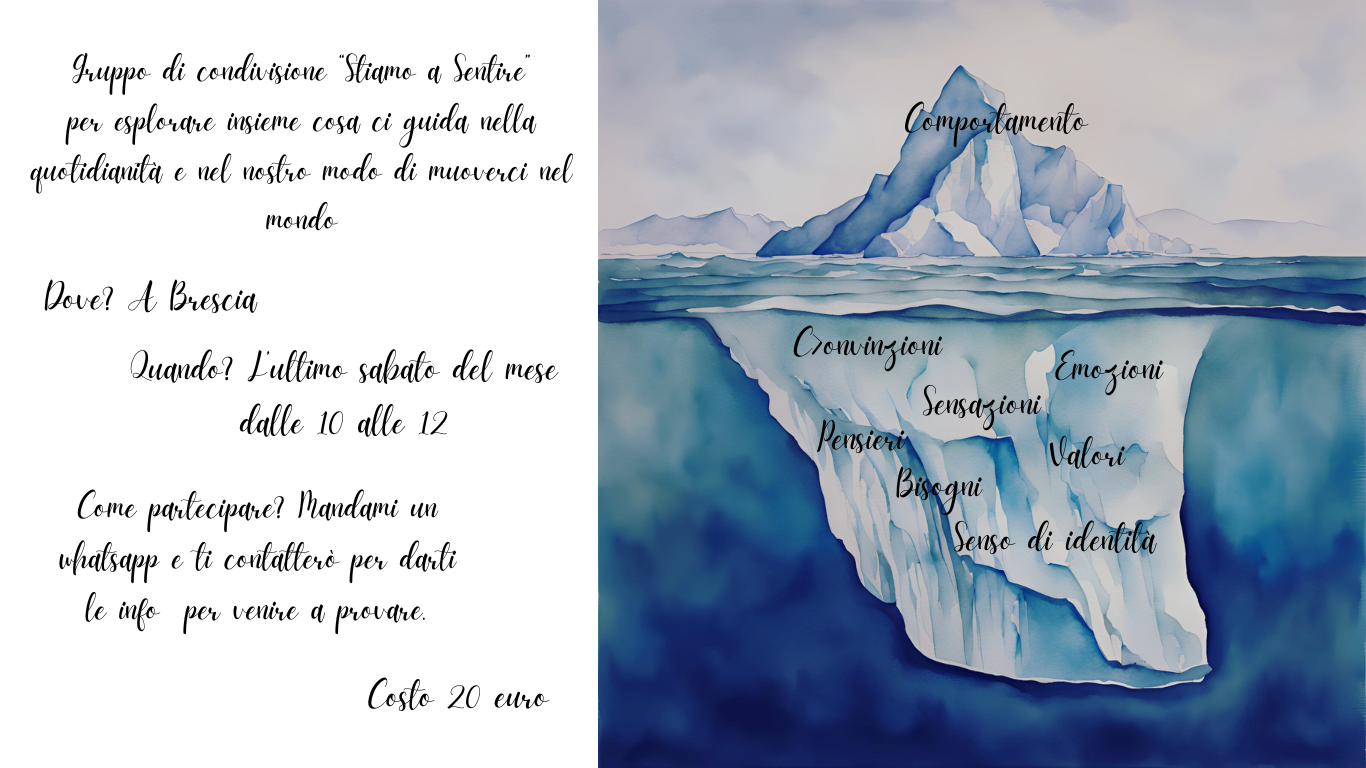 Il gruppo si caratterizza per essere un’esperienza di condivisione guidata. Verranno gradualmente forniti alcuni contributi teorici e verranno proposte riflessioni per accrescere la consapevolezza di alcuni elementi che influiscono sul nostro modo di muoverci nel mondo. Allo stesso tempo vuole essere una possibilità di vivere uno spazio di Accoglienza e Ascolto Attivo.